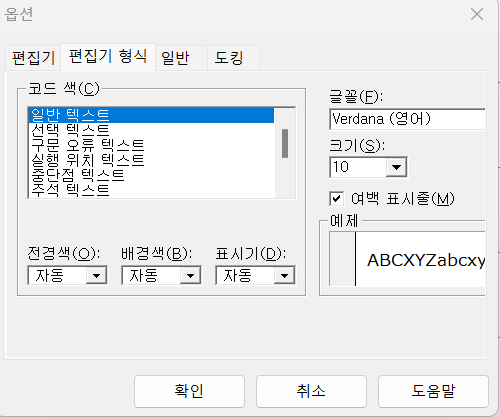 - 도구 - 옵션 - 편집기 - 편집기 형식 - 글꼴(F)