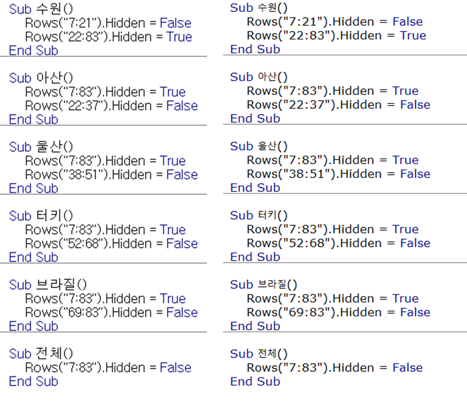 - 자동 매크로 기록 + 직접 코딩하는 방법으로 작성.