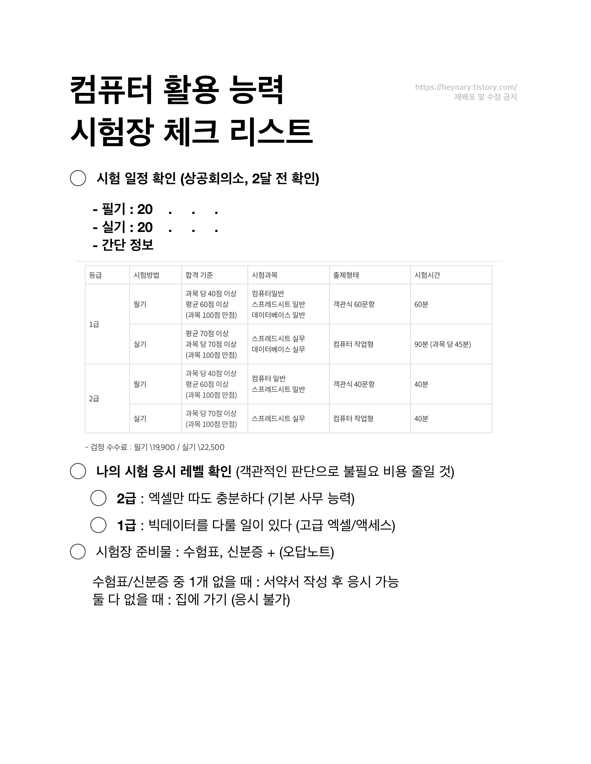9. 컴퓨터 활용 능력 응시 전 필수 체크리스트 (자료 공유) : 본 게시글