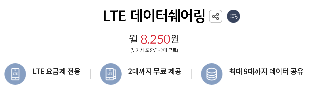 LTE 요금제는 무료로 2대까지 데이터 쉐어링이 가능한데